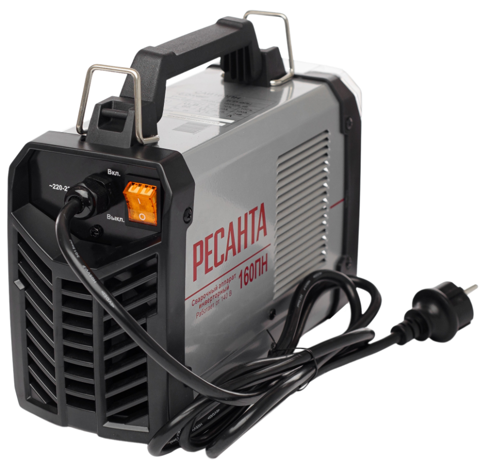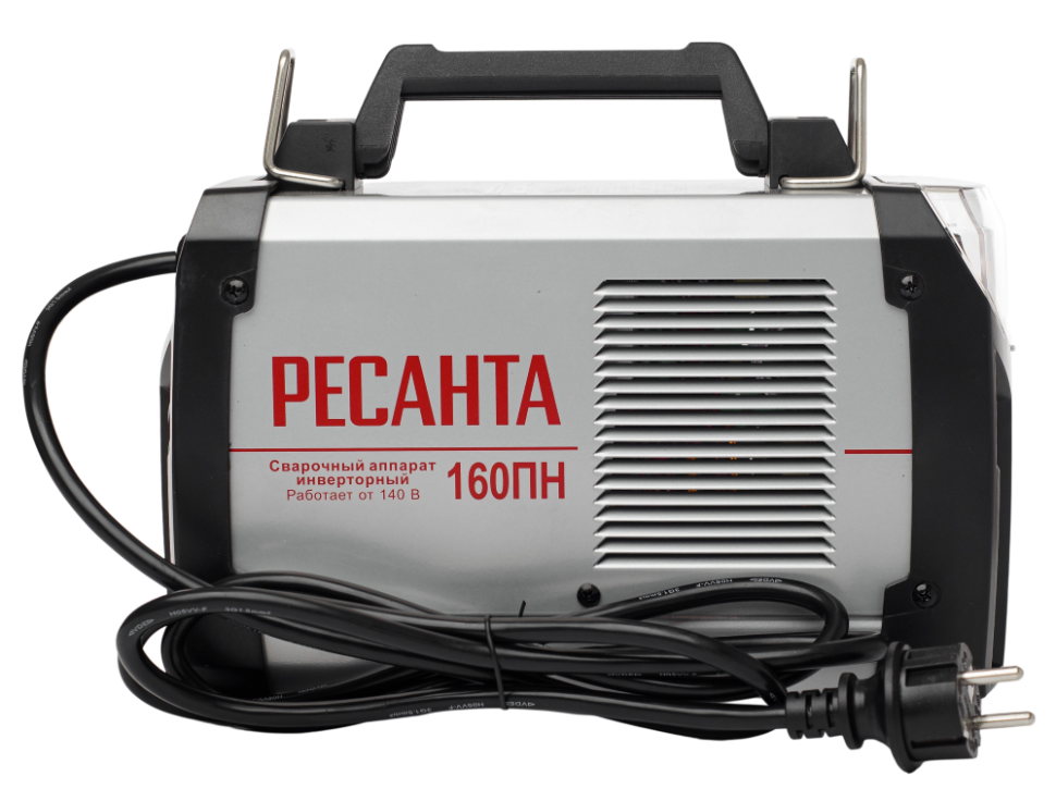 - Устройство работает от сети переменного тока с напряжением от 140 до 260 В. Ресанта САИ-160ПН может работать при пониженном напряжении, поэтому его можно применять в местах, характеризующихся перепадами напряжения.