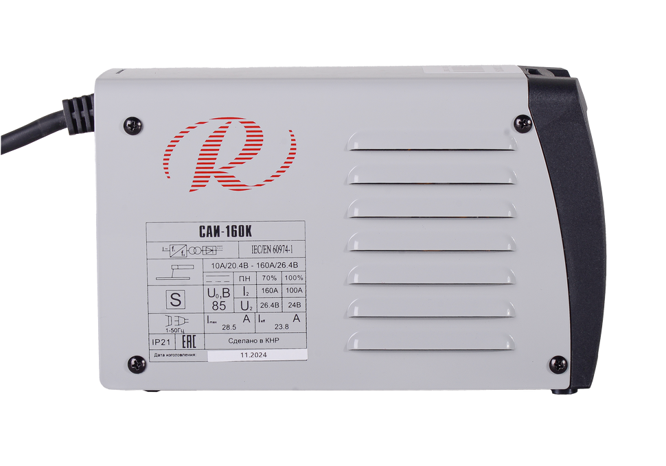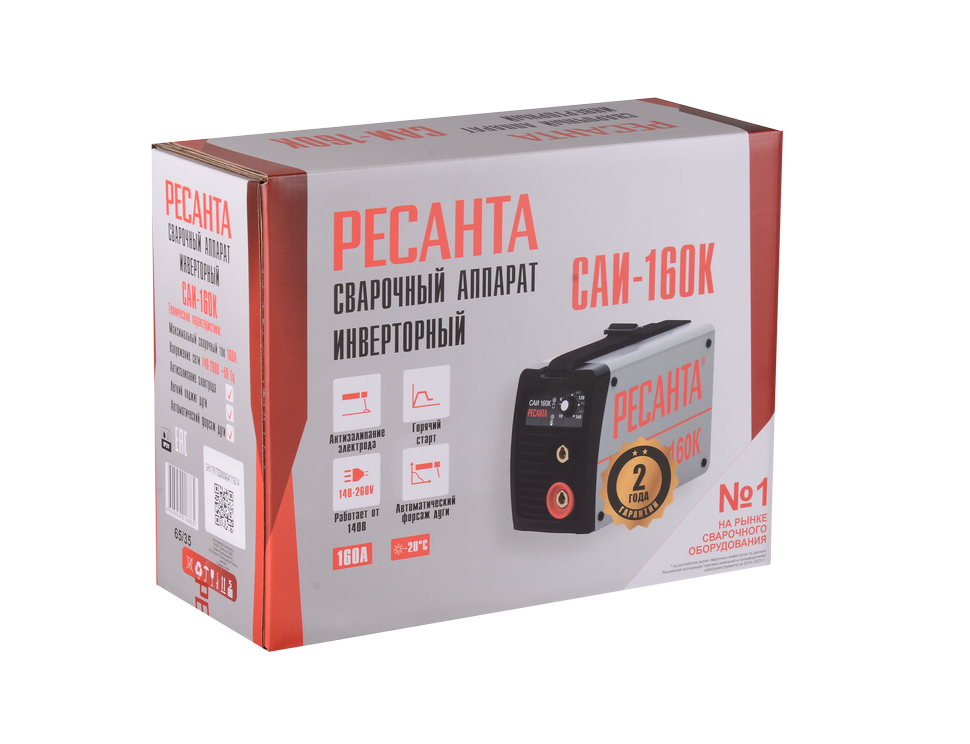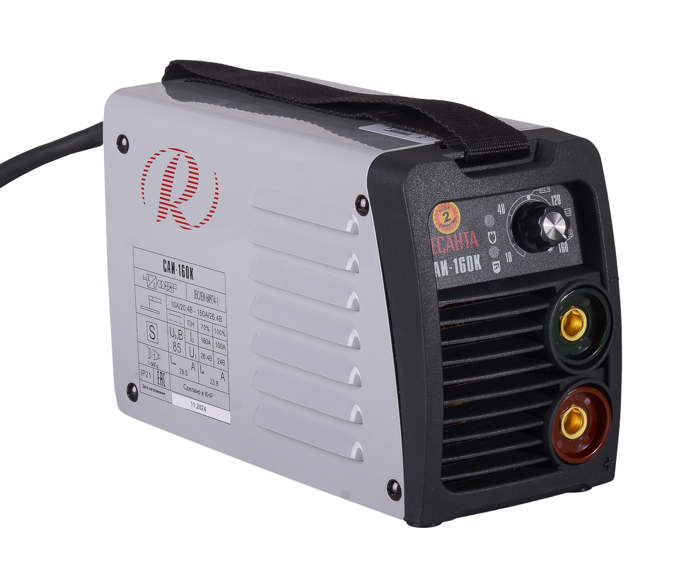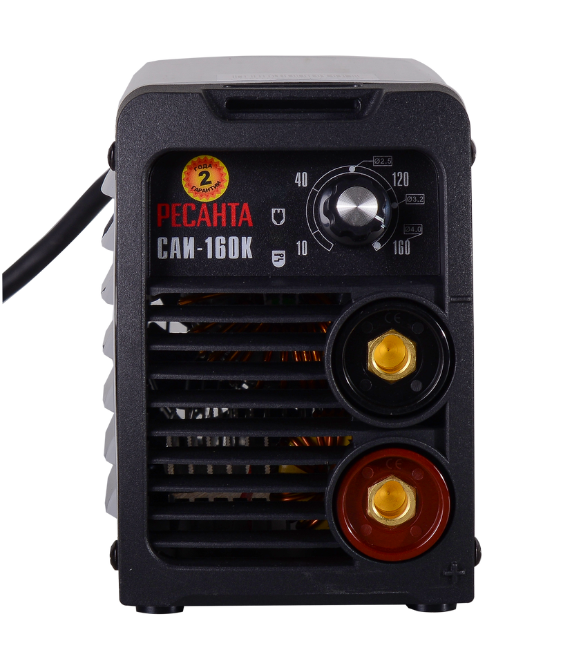 Сварочный инверторный аппарат бытового типа Ресанта САИ-160К удобен и прост в эксплуатации. Предназначен для ручной дуговой сварки MMA плавящимися электродами с обмазкой диаметром до 4 мм. Показатель продолжительности нагружения однофазной модели равен 70%. Потребляемая мощность в процессе работы не превышает 5,9 кВт. Сварочный ток регулируется в диапазоне 10-160 А. Механический переключатель расположен на лицевой панели. Функция форсажа дуги повышает сварочный ток в случае ее обрыва и угасания.