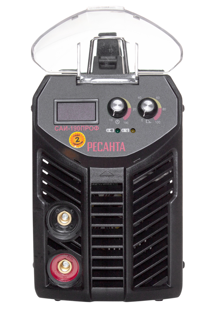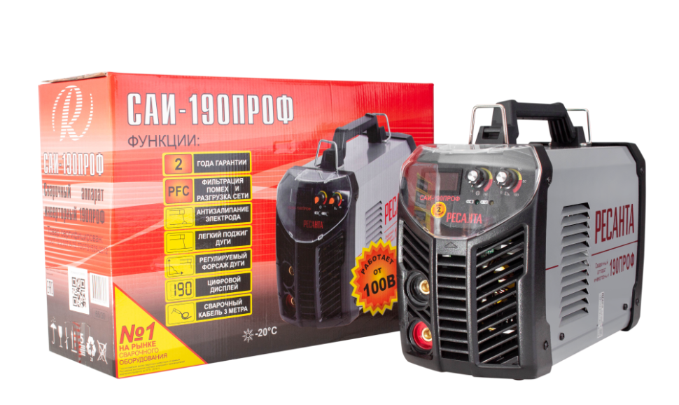 Функция Antistick предупреждает залипание электрода (автоматически понижает ток). Для удобства эксплуатации также предусмотрена опция ArcForce, которая улучшает текучесть металла и обеспечивает устойчивость дуги, и HotStart, упрощающая начало работ. Функция VRD гарантирует безопасность в случае проведения работ в условиях повышенной влажности. Наличие съемного ремня позволяет легко переносить Ресанту САИ-190ПРОФ на площадке.