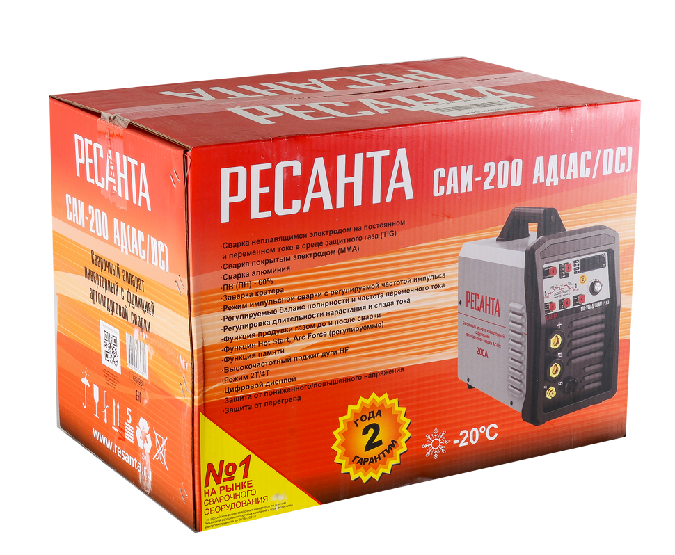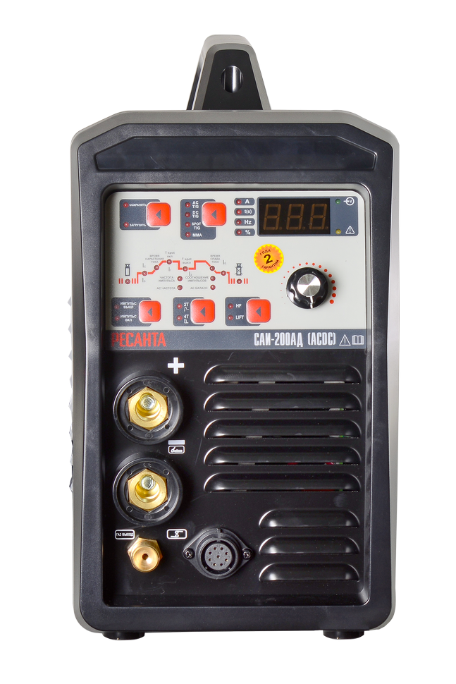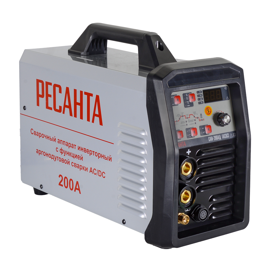 Сварочный инверторный аппарат Ресанта САИ-200 АД (AC/DC) обеспечит выполнение аргонодуговой сварки на постоянном или переменном токе в разных режимах.