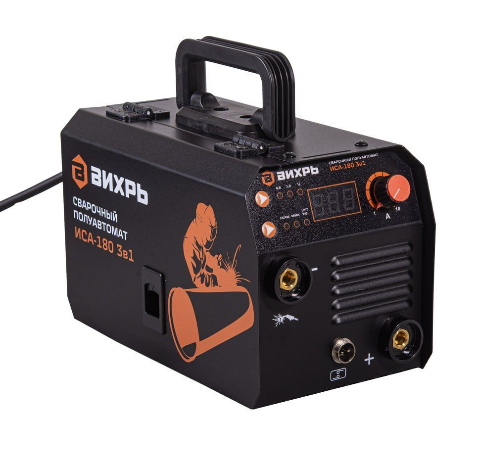 Сварочный полуавтомат Вихрь ИСА-180 3в1 − универсальный аппарат, поддерживающий разные режимы сварки, такие как MMA, TIG lift и FCAW (Flux). Устройство может работать при напряжении от 140 В, что делает его удобным для эксплуатации в нестабильных сетях. Модель имеет диапазон регулировки сварочного тока от 20 до 180 А, что позволяет эффективно работать с различными типами материалов и выполнять сварку с широким диапазоном настроек.