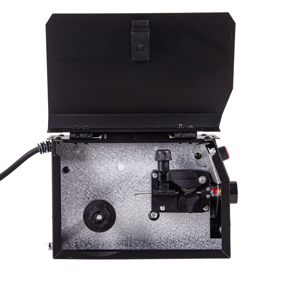 Вихрь ИСА-180 3в1 работает с порошковой проволокой диаметром 0.8 и 1.0 мм. Полуавтомат оборудован встроенным подающим механизмом. Комплектация устройства включает сварочную горелку длиной 1,5 м. Длина кабеля заземления − 1.2 м, а электрододержателя − 1.5 м.