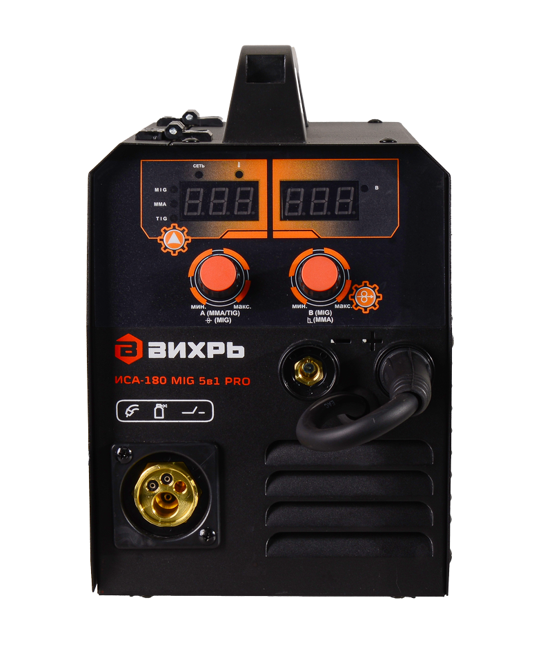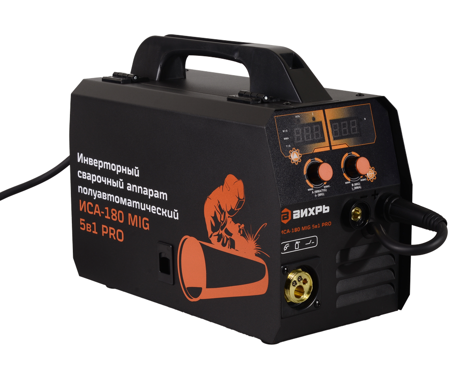 Сварочный полуавтомат имеет высокую производительность вместе с компактными размерами и универсальностью. Вихрь ИСА-180 MIG PRO – это лучший выбор для некрупных строительных работ и хозяйственного использования.