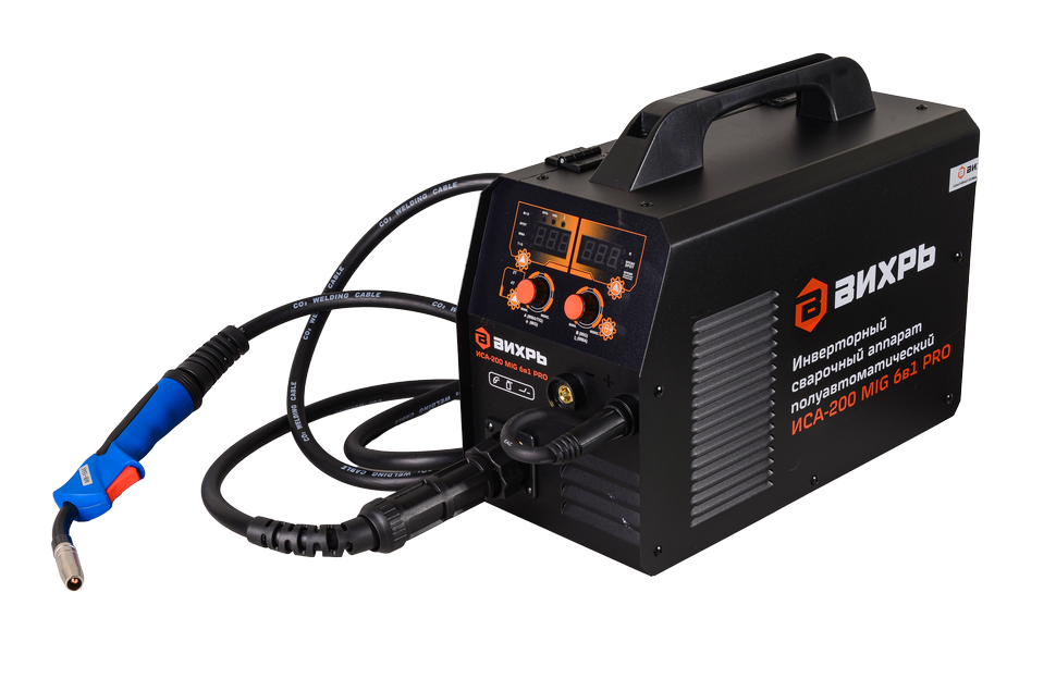 Многофункциональный сварочный полуавтомат Вихрь ИСА-200 MIG PRO имеет компактные размеры и малый вес 9,45 кг. Работает с электродами толщиной до 5 мм. Наибольшая потребляемая мощность на ручном режиме составляет 5900 Вт. Минимальная сила тока на зажимах сварки без присутствия дуги составляет 83.7 В. Преимуществом модели являются такие функции как антизалипание электрода, горячий старт и форсаж дуги. Используется как в помещении, так и на улице при температуре от -20 до +50° С. В комплекте кабель с горелкой, кабель с клеммой заземления, наконечники.
