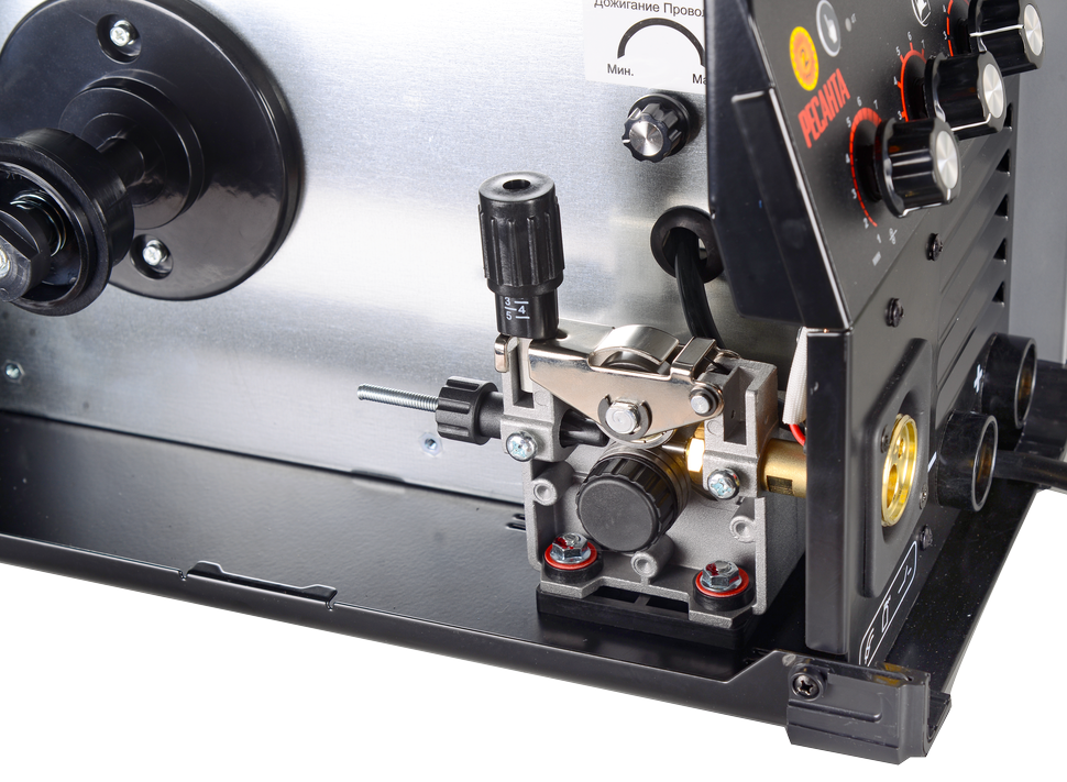 Важная особенность полуавтоматического аппарата заключается в том, что проволока подаётся сама. Оператору не нужно прерывать работу для заправки, а также отвлекаться. Швы получаются аккуратные.