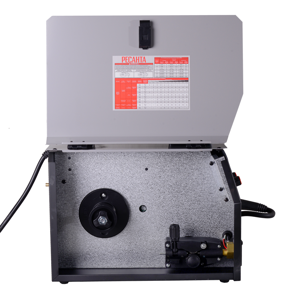 Полуавтомат выполняет электродуговую сварку постоянным током в газовой среде благодаря наличию функций ММА и MIG/MAG. В комплектацию входит съемная газовая горелка, шланг длиной 3 м, 2 наконечника, сетевой кабель длиной 2 м и кабель заземления. Устройство оснащено тепловым реле, надежно защищено от перегрева. Пользователь имеет возможность производить регулировку сварочного тока и скорости подачи проволоки, это упрощает проведение работ, позволяет получить сварной шов высокого качества. Преимуществом сварочного полуавтоматического инверторного аппарата является частичная механизация процесса сварки. Электродная проволока подается автоматически, что экономит время, необходимое на ручную замену расходного материала, и дает возможность сосредоточиться на качестве проводимой сварки. Модель имеет функции HotStart (автоматическое повышение тока в начале работы), Antistick (антизалипание), ArcForce (устойчивость дуги), 2Т/4Т (избавляет от необходимости держать кнопку нажатой постоянно).