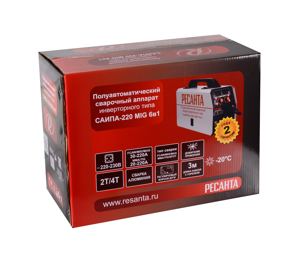 Сварочный аппарат Ресанта САИПА 220 обеспечит качественную сварку заготовок из нержавейки, алюминия, цветных металлов в режимах MIG/MAG и ММА.