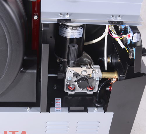 Аппарат относится к категории полуавтоматических. В нём подача проволоки осуществляется в автоматическом режиме. Он может работать со сварочной проволокой различного диаметра – от 0.6 мм до 1.2 мм и с электродами от 1.5 мм до 5.0 мм. В этом аппарате реализовано много полезных функций и режимов, а именно: MIG, MAG, MMA, сварка алюминия. Имеются эффективные системы защиты от перегрева и низкого напряжения сети. Длина горелки и кабеля заземления – 3 м. Аппарат получил класс изоляции S и защиту от пыли и капель воды IP21. Сварочник может работать при температуре окружающего воздуха от -20°С до +50°С. Для переноски на корпусе предусмотрена удобная ручка. Вес сварочного аппарата – 35.44 кг.