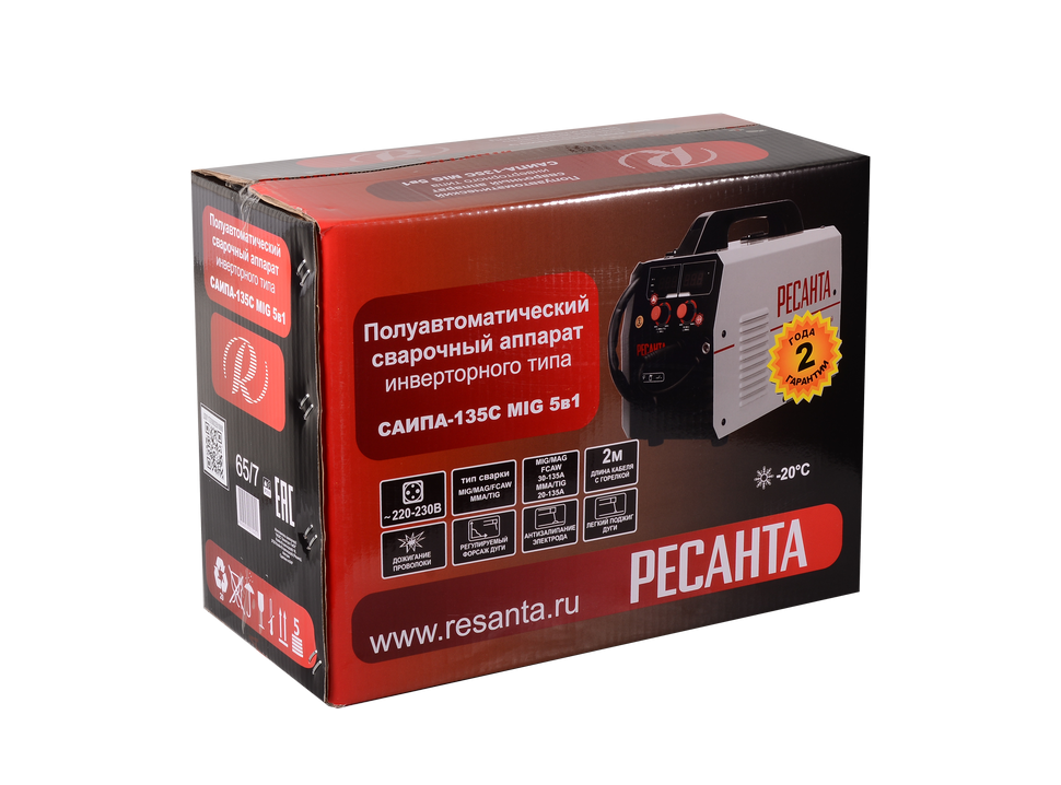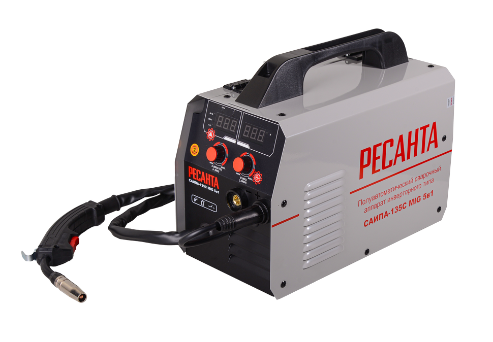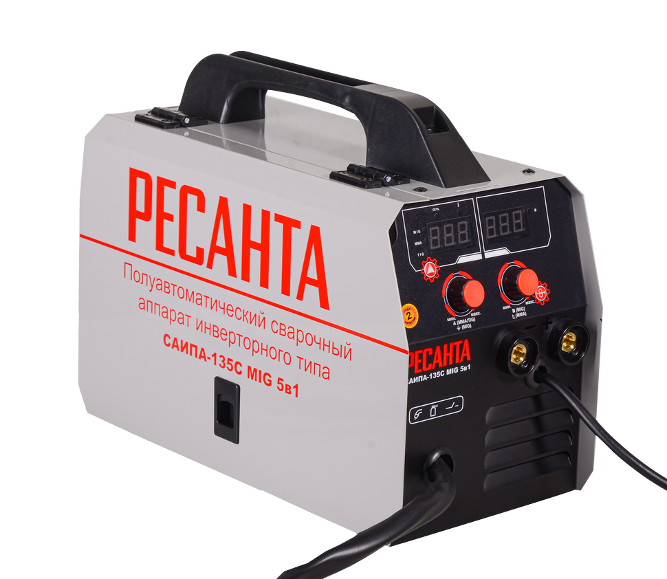 Ресанта САИПА 135С представляет собой компактный и мощный сварочный аппарат. Полуавтоматическая модель относится к однофазным устройствам (от сети 220В). Причисляется к универсальным типам, поэтому может работать в режимах сварки MIG/MAG, а также MMA.