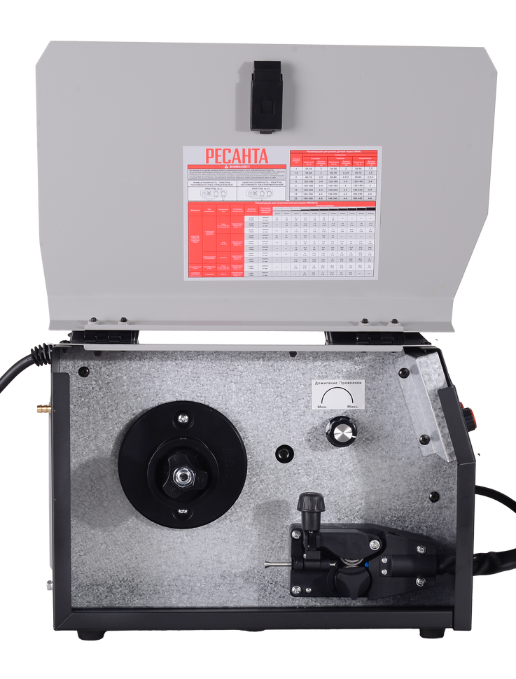 Питание от однофазной сети, компактные габариты и малый вес обеспечивают удобство бытового использования при температуре от -20º до +50º C. Для быстрой очистки сопла горелки предусмотрена функция прогона проволоки на холостом ходу. Горячий старт ускоряет розжиг дуги. Залипание электрода предотвращают функции форсажа дуги и Antistick. Встроенный подающий механизм обеспечивает движение проволоки и ее принудительную протяжку для очистки сопла горелки.