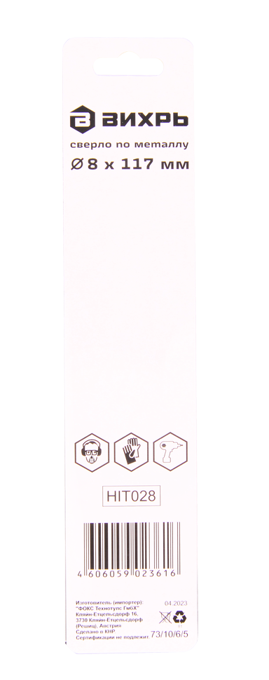 Сверло по металлу ВИХРЬ 8 мм, P6M5 используется для сверления отверстий диаметром 8 мм в металлических деталях. Длина сверла составляет 117 мм. Оно изготовлено методом вышлифовывания из высокопроизводительной быстрорежущей стали P6M5, что позволяет ему выдерживать значительные нагрузки. Для повышения тепло- и износостойкости сверло подверглось термо-химической обработке, благодаря чему получило желтый оттенок. Твёрдость – 64-66 HRC.