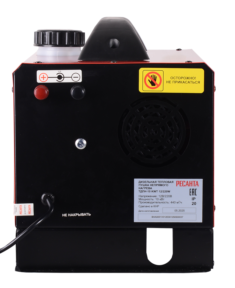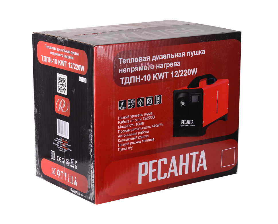 Дизельная тепловая пушка непрямого нагрева ТДПН-10 KWT 12/220W Ресанта создана для быстрого и экономичного прогрева обширных нежилых помещений, таких как складские комплексы, ремонтные мастерские, животноводческие фермы, строительные площадки, бытовые сооружения вроде гаража или подсобки.