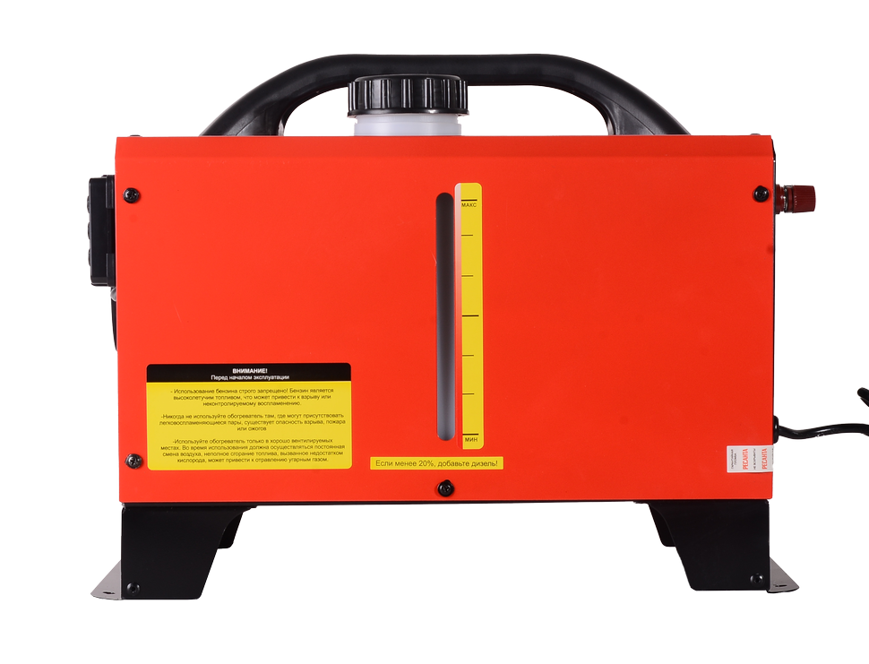 Агрегат оборудован мощным двигателем, способным выдавать тепловую мощность до 10 кВт, что достаточно для полноценного обогрева значительных объемов. Конструкция предусматривает минимальный расход топлива — всего около 0,53 кг/ч, а объем встроенного топливного бака в 5 л позволяет устройству стабильно функционировать до 9,5 ч подряд, существенно увеличивая эффективность работы.