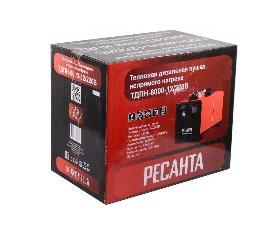 Тепловая дизельная пушка непрямого нагрева ТДПН-8000-12/220В Ресанта — это обогревательный прибор, предназначенный для использования в нежилых помещениях, таких как стройплощадки, склады и ангары, гаражи и мастерские. Эта модель обладает рядом особенностей, делающих её удобной и надежной в эксплуатации.