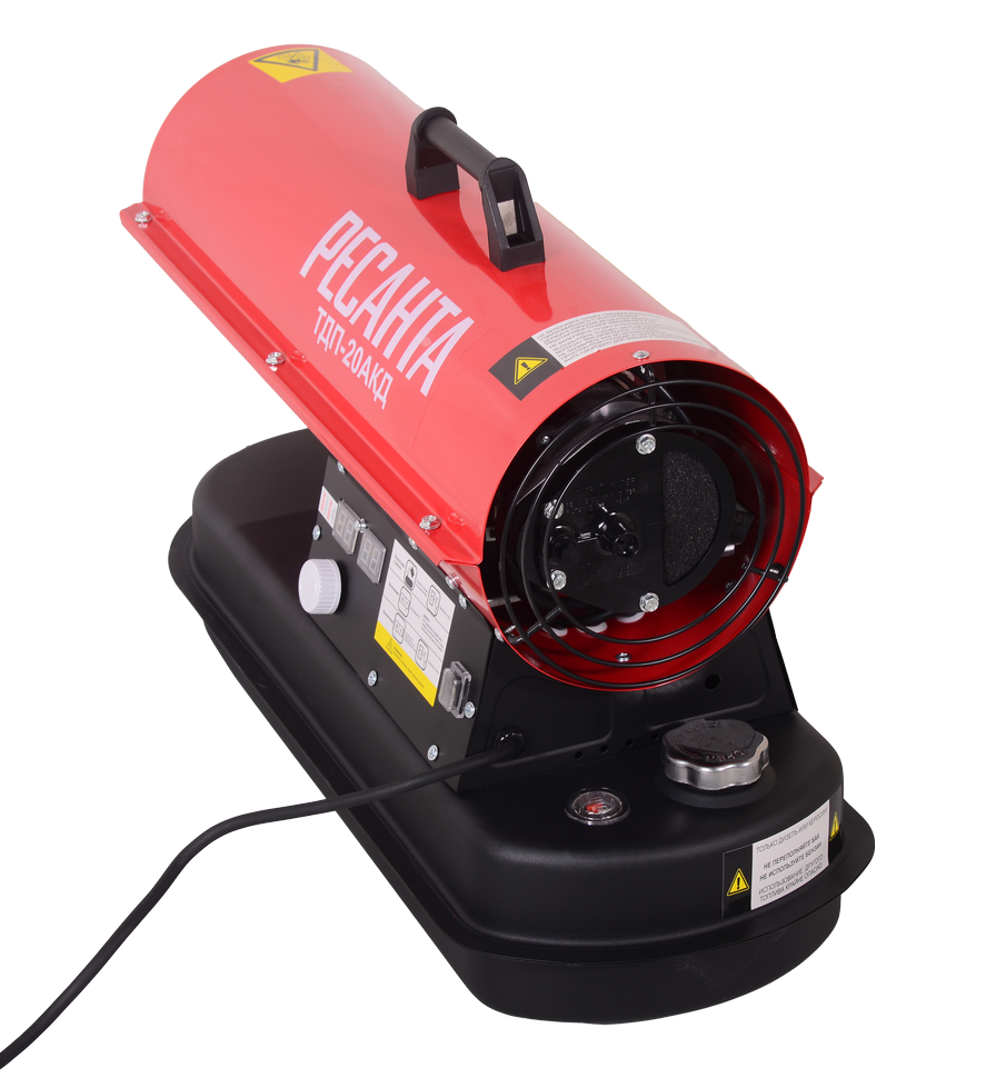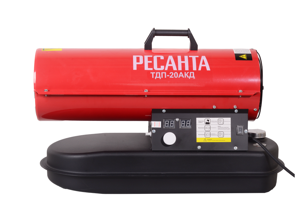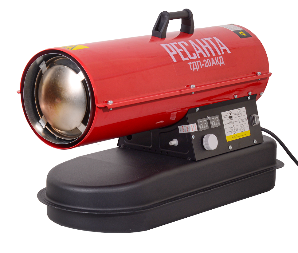 Дизельная тепловая пушка Ресанта ТДП-20АКД как нельзя лучше подойдет для обогрева производственных и складских помещений. Часто применяют устройство на строительных площадках и в нежилых помещениях. Тепловую пушку легко подключить и начать использовать. Работа на дизельном топливе делает ее максимально мобильной.