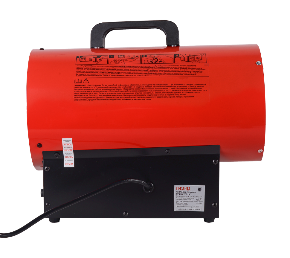 Газовая тепловая пушка Ресанта ТГП-15E — это современное и надёжное решение для эффективного обогрева помещений различного назначения. Теплопушка прекрасно справляется с задачей создания комфортного микроклимата на строительных площадках, в складских комплексах, производственных помещениях и мастерских. Работая на сжиженном газе (пропане и пропан-бутановой смеси), устройство обеспечивает экономичный и безопасный обогрев.