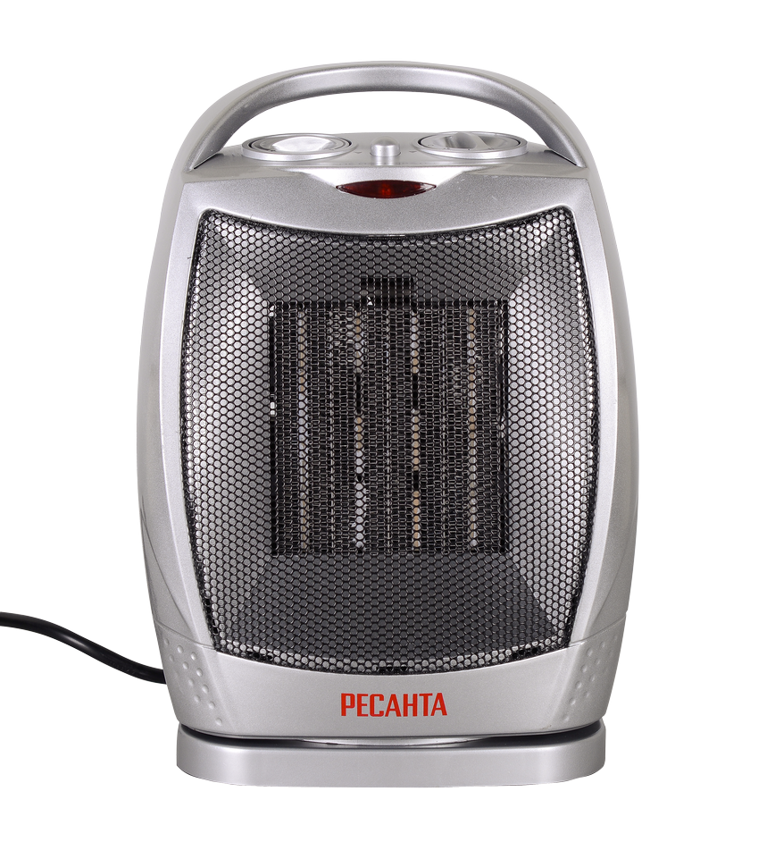 В модели РЕСАНТА ТВК-2 имеется терморегулятор, светодиодная индикация работы и система термозащиты, которая отключает питание прибора при перегревах. Удобной функцией в этой модели терморегулятора серии РЕСАНТА ТВК является возможность автоматического поворота, что обеспечивает быстрый прогрев помещений, а также наличие системы, защищающей от опрокидывания. Прибор компактный. Вес его всего 2 кг. Имеется удобная ручка для переноски и широкая устойчивая платформа для напольной установки. При отключении обогревателя желательно включить режим вентилятора, чтобы остудить керамический нагревательный элемент. Питание прибора – от сети 220В, 50 Гц.