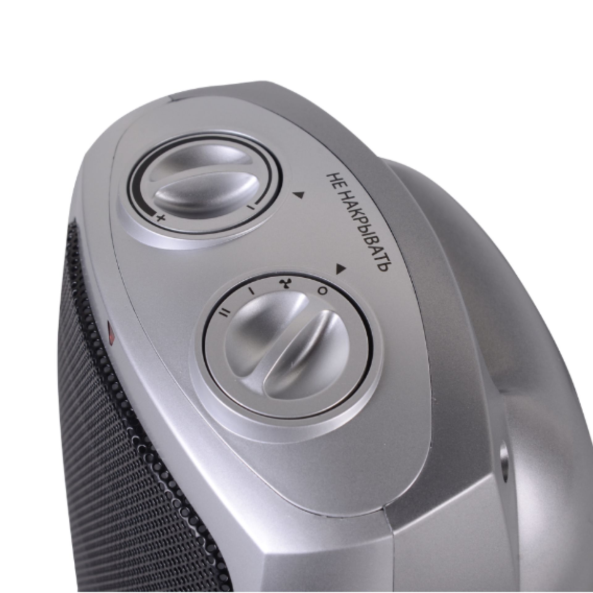 Тепловентилятор оснащен двумя рабочими режимами: щадящим режимом мощностью 1200 Вт, который отлично подходит для умеренной зимы или мягкого подогрева пространства, и основным режимом мощностью 2000 Вт, предназначенным для быстрого повышения температуры в большом объеме воздуха.