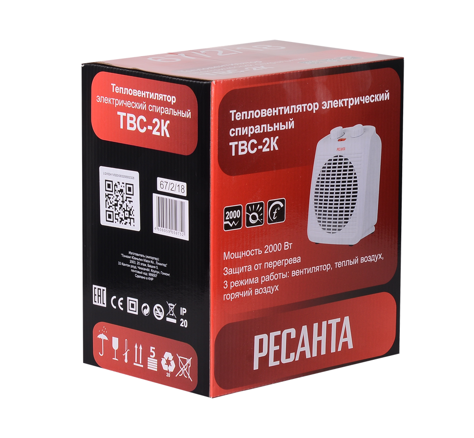 Тепловентилятор TBC-2K Ресанта — это компактный и эффективный климатический прибор, предназначенный для быстрого обогрева помещений различного назначения. Благодаря сочетанию мощного нагревательного элемента и высокопроизводительного вентилятора устройство мгновенно прогревает воздух, обеспечивая комфортную температуру.
