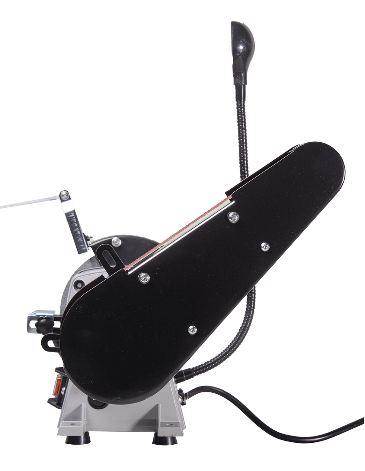 Точильный станок Ресанта Т-150/350Л оснащен абразивным кругом и шлифовальной лентой. Это расширяет возможности электроинструмента. На круге выполняется заточка колющих и режущих инструментов: топоров, ножей, ножниц, секаторов и т.д. Шлифовальная лента нужна для черновой и чистовой шлифовки поверхностей, обработки кромок, финальной полировки. В зависимости от установленной оснастки можно обрабатывать не только металлические изделия, но и дерево, стекло, керамику. К станку подходят абразивные диски 150x16 мм с посадочным отверстием 12.7 мм и шлифовальная лента размером 50 х 686 мм.