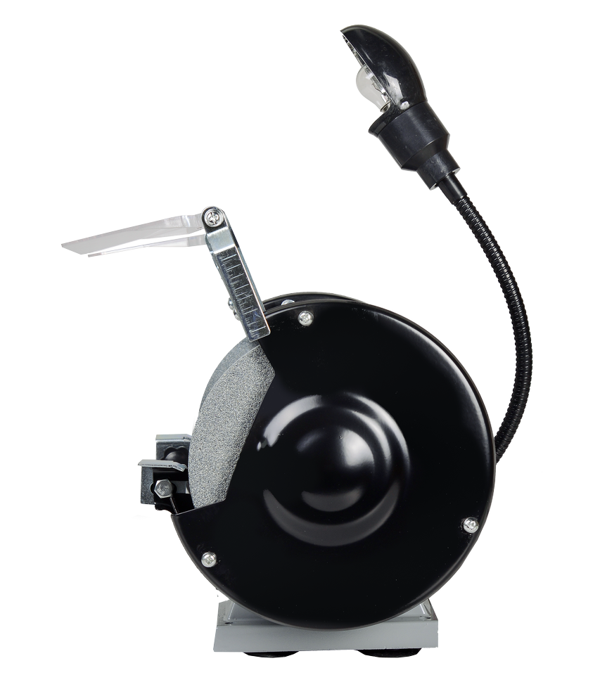 Безопасность во время заточки инструмента обеспечивают рабочие упоры для изделия, искрогасители и прозрачные защитные экраны. Они устанавливаются на точильный станок перед первым использованием. Искрогаситель блокирует разлет окалины по рабочему месту, а экран защищает пользователя от попадания металлических частиц. Рабочий упор позволяет расположить лезвие инструмента под нужным углом и предотвратить его соскальзывание при заточке.