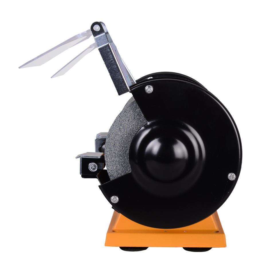 Вихрь ТС-150 предусматривает возможность менять вид шлифовального круга в зависимости от стоящей задачи. Диаметр круга составляет 125 мм, толщина – 16 мм, посадочный диаметр – 12.7 мм. Точильный станок отличается компактностью, хорошей эргономикой и может надёжно крепиться к рабочему столу, поэтому работать на нём очень удобно. Корпус станка прочный, металлический. Питание от сети 220 В, 50 Гц.