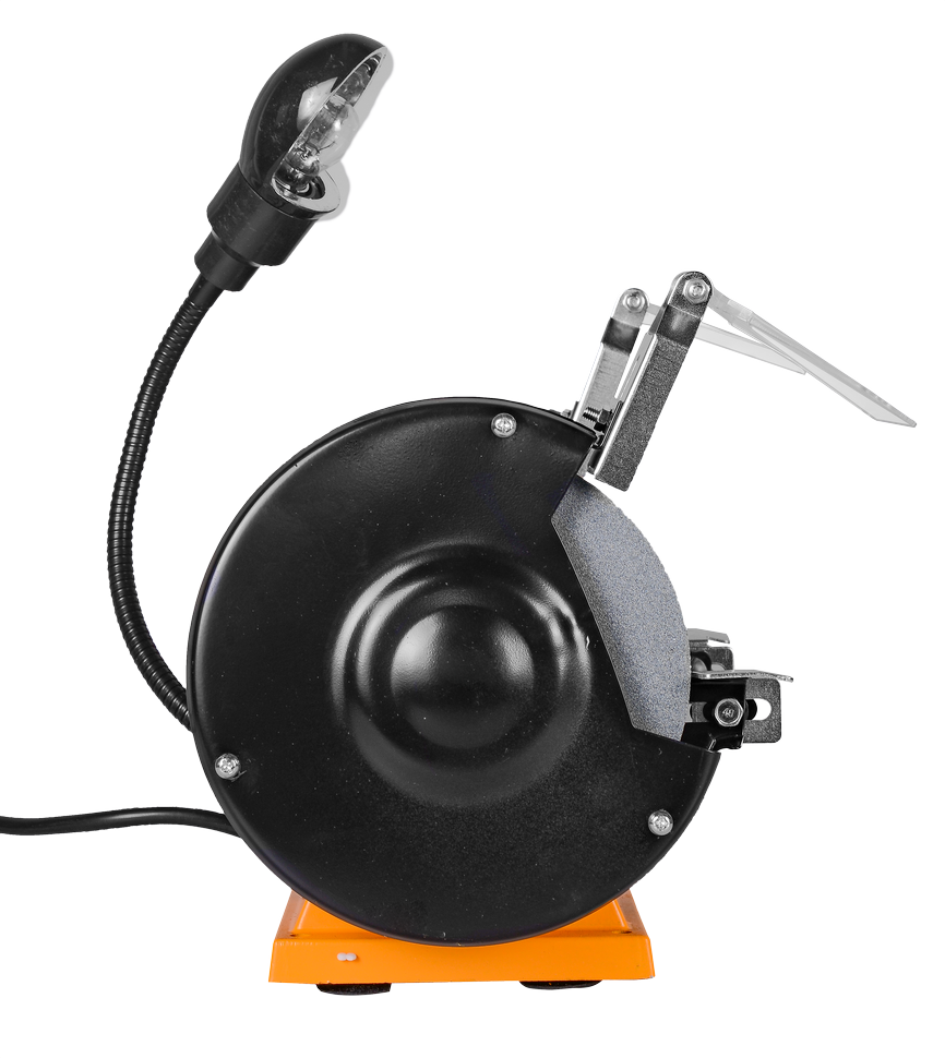 Точильный станок Вихрь ТС-200 – это простой в использовании и универсальный электроинструмент, который работает от привода электрического мотора мощностью 200 Вт. Основное предназначение – заточка режущего инструмента с ровным лезвием, в том числе ножей, стамесок и пр. Точильный станок имеет продуманную конструкцию. В инструменте используется асинхронный электродвигатель, применение которого помогает уменьшить вибрации во время работы. Для работы могут использоваться шлифовальные круги размером 150х16 мм. Вращаются круги с частотой 2950 об./мин. Рекомендуется устанавливать круги с разной зернистостью.