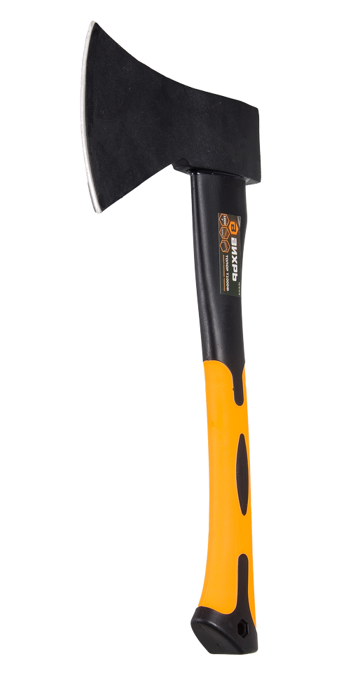 Рукоятка топора выполнена из фибергласса, имеет удобную форму и не скользит в руках. Поглощает колебания при ударе. Длина топорища 38 см.