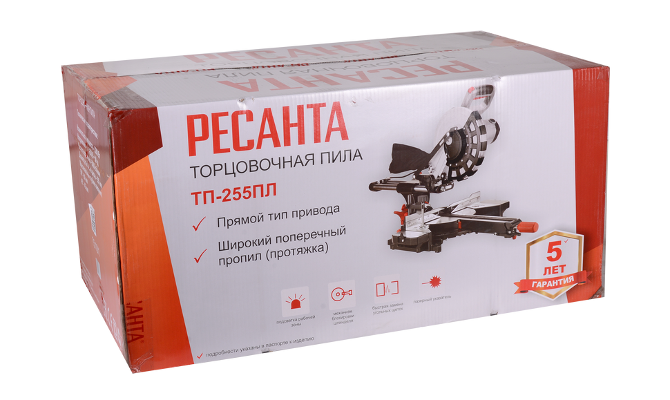 Модель пилы Ресанта ТП-255ПЛ относится к категории пил с протяжкой, поэтому может обеспечивать обработку больших по размеру заготовок. Для безопасности в конструкции торцовочной пилы имеется защитный кожух, а для удобства инструмент оснащён лазерным указателем, помогающим отмечать линии отреза, а также подсветкой рабочей зоны. Для простоты и оперативности замены дисков предусмотрена специальная кнопка, блокирующая шпиндель. К инструменту может подключаться пылесос, обеспечивающий эффективное удаление с места пиления опилок. В комплектацию пилы входит вместительный мешок для сбора отходов.
