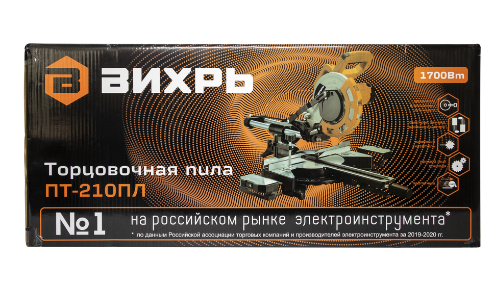 Торцовочная пила Вихрь ПТ-210ПЛ – это электроинструмент, который используется для поперечного распила заготовок и под углом. Применяется для работы с заготовками из дерева разных пород, а также композитных материалов. При использовании специальных дисков подходит для распила профилей и труб из пластика либо металла с малым сечением. Диаметр пильного диска составляет 210 мм, глубина пропила зависит от угла расположения заготовки.