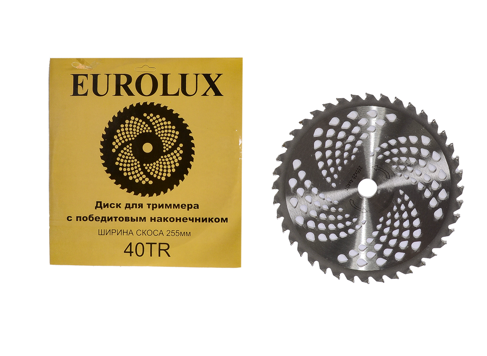 в базовой комплектации к бензотриммеру прилагается головка с леской и стальной диск на 40 зубьев с победитовыми напайками;