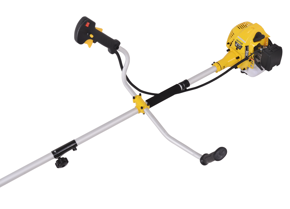 Для удобного управления бензотриммер оборудован велосипедной рукояткой, на правой стороне которой находятся выключатель и курок газа с блокировкой от случайного нажатия. Устройство надежно фиксируется через плечо ремнем. Работать с данной моделью достаточно комфортно благодаря ее небольшому весу и антивибрационной системе. Компактную транспортировку и хранение инструмента обеспечивает наличие разборной штанги.