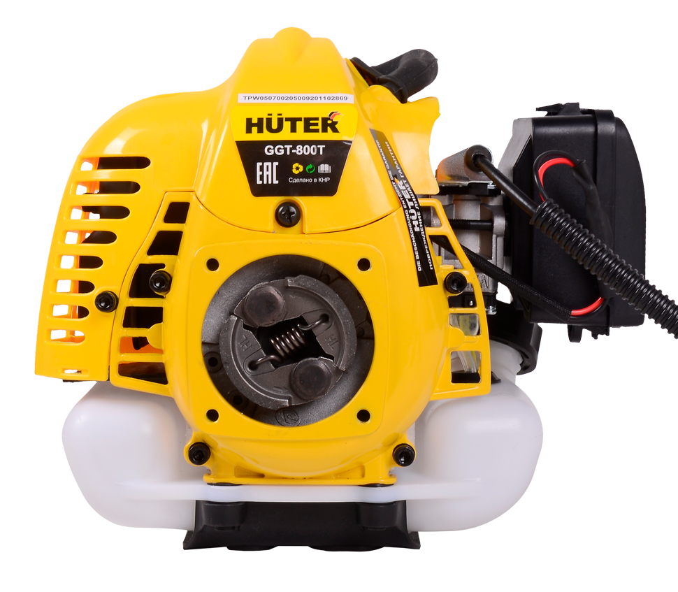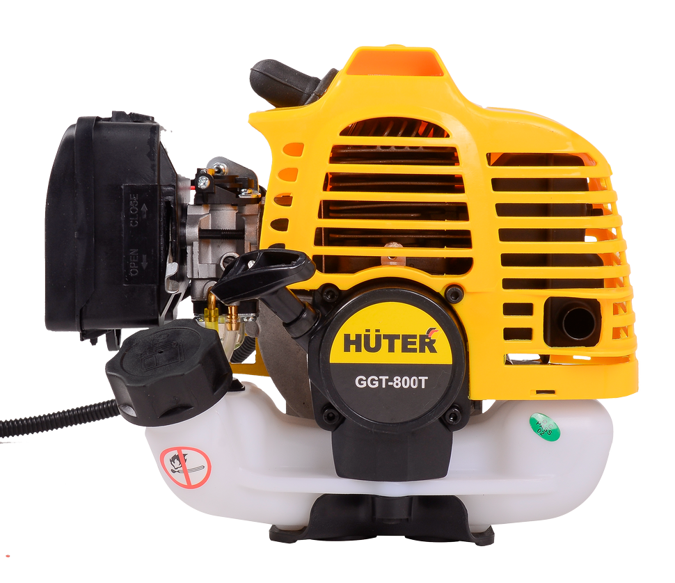 Бензиновый триммер модели HUTER GGT-800T – бюджетный вариант для скашивания травы на приусадебном участке, подходит для небольших объемов работы. Ширина скоса леской - 460 мм., ножом - 255 мм. Он схож с GGT-800S в плане конструкции, но отличается от него цельной литой штангой. Внутри корпуса надёжный бензодвигатель двухтактного типа, оснащённый системами воздушного охлаждения и антивибрации. Это полностью автономный триммер, который может работать без подключения к сети. В качестве топлива ему необходима смесь бензина АИ-92 и масла, пропорции для которой зависят от рекомендаций производителя масла. Если пропорция не указана, то используется 1:40.