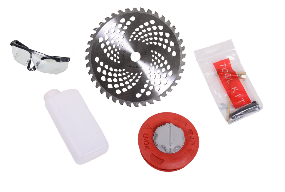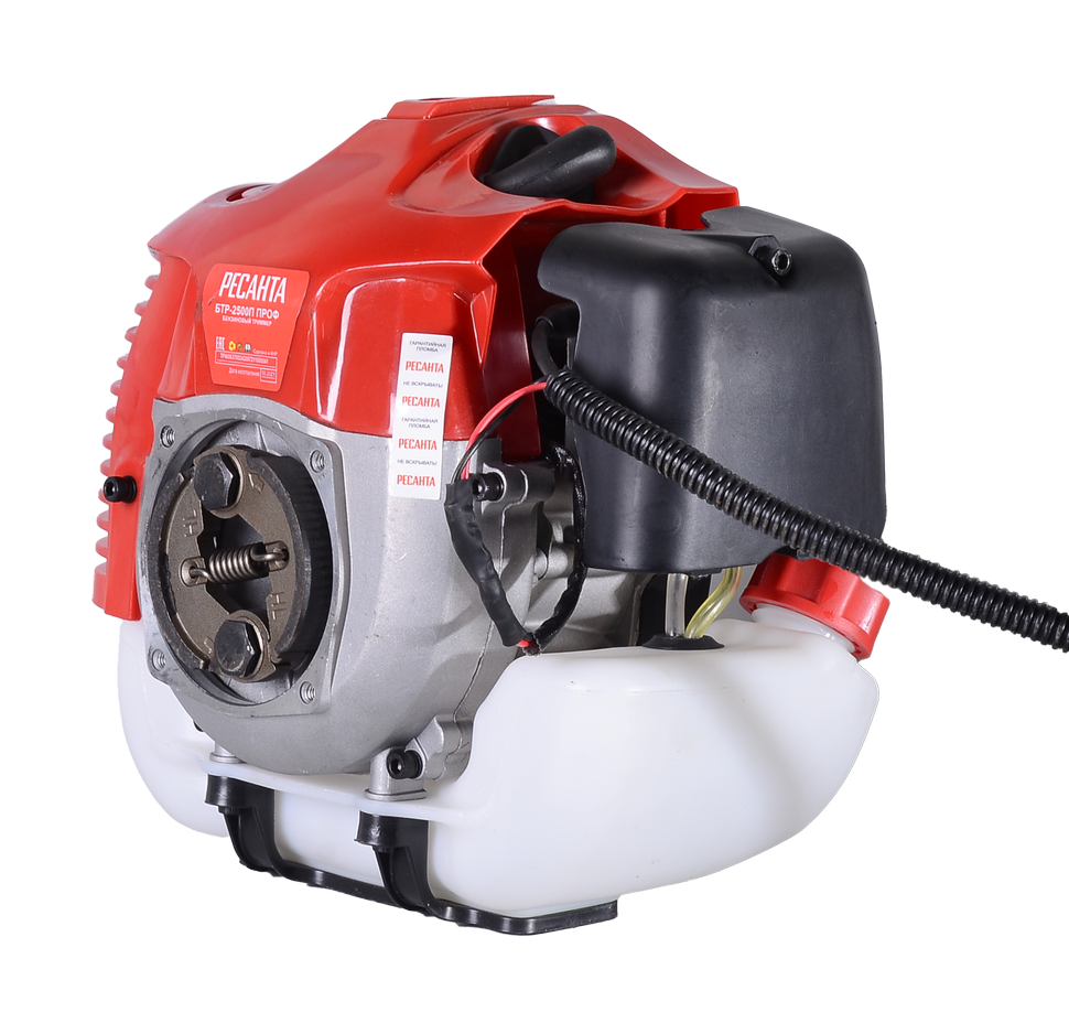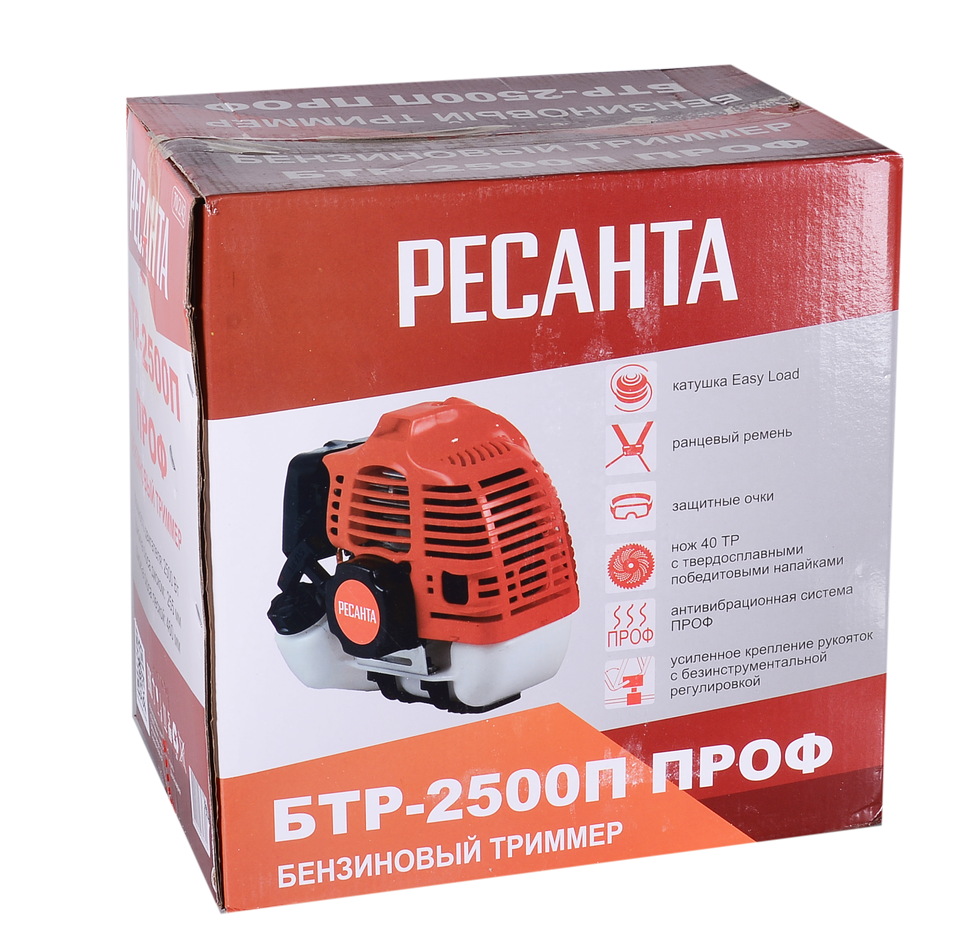 В качестве режущего инструмента в модели Ресанта БТР-2500П ПРОФ используется нейлоновая леска и хромированный многозубчатый диск 40ТР с победитовыми напайками. Ширина прохода леской составляет 46 см, диском – 25.5 см. Для удобства работы бензотриммер оснащён катушкой «Easy Load», обеспечивающей безразборную заправку лески, профессиональной антивибрационной системой, быстрым пуском и блокировкой несанкционированного включения. В комплект бензинового триммера входит регулируемый ремень ранцевого типа и защитные очки. Вес инструмента – 6.7 кг.
