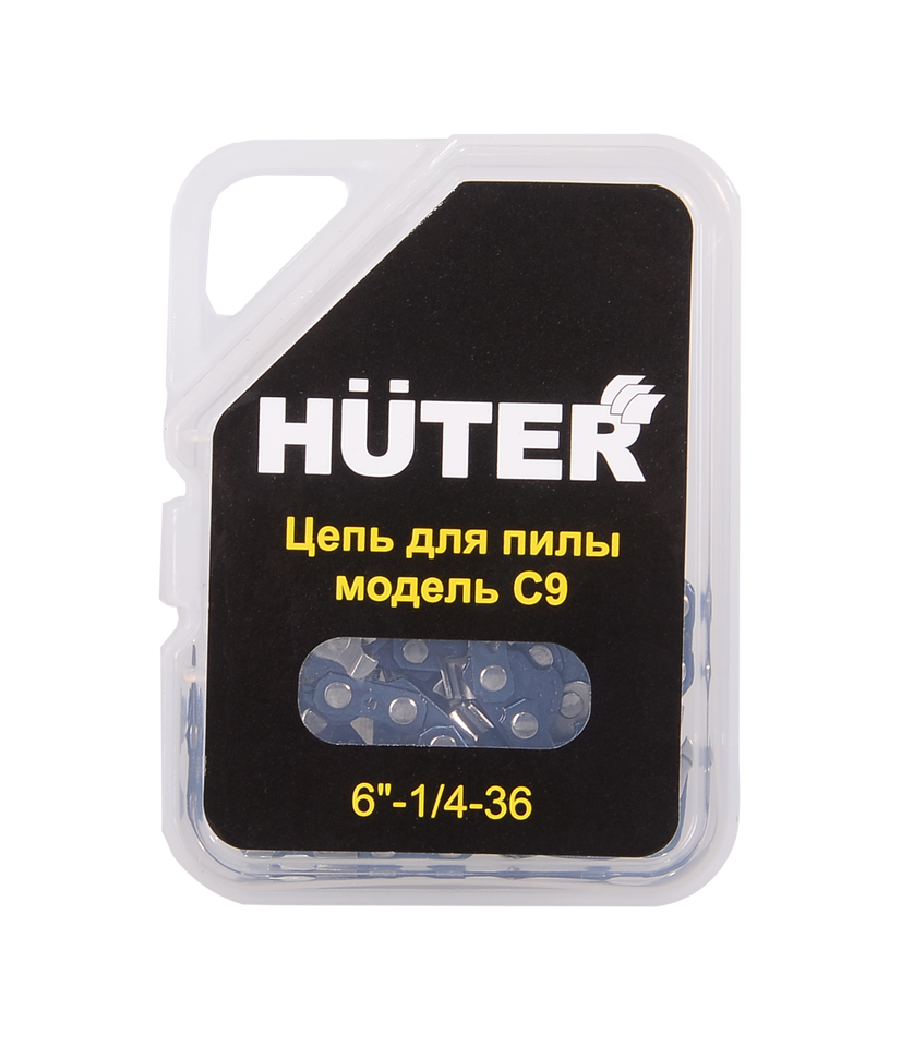 Цепь С9 Huter рассчитана на шину длиной 15,2 см. Толщина звена 1", шаг цепи – 1/4”, кол-во звеньев: 36. Подходит для модели аккумуляторных пил