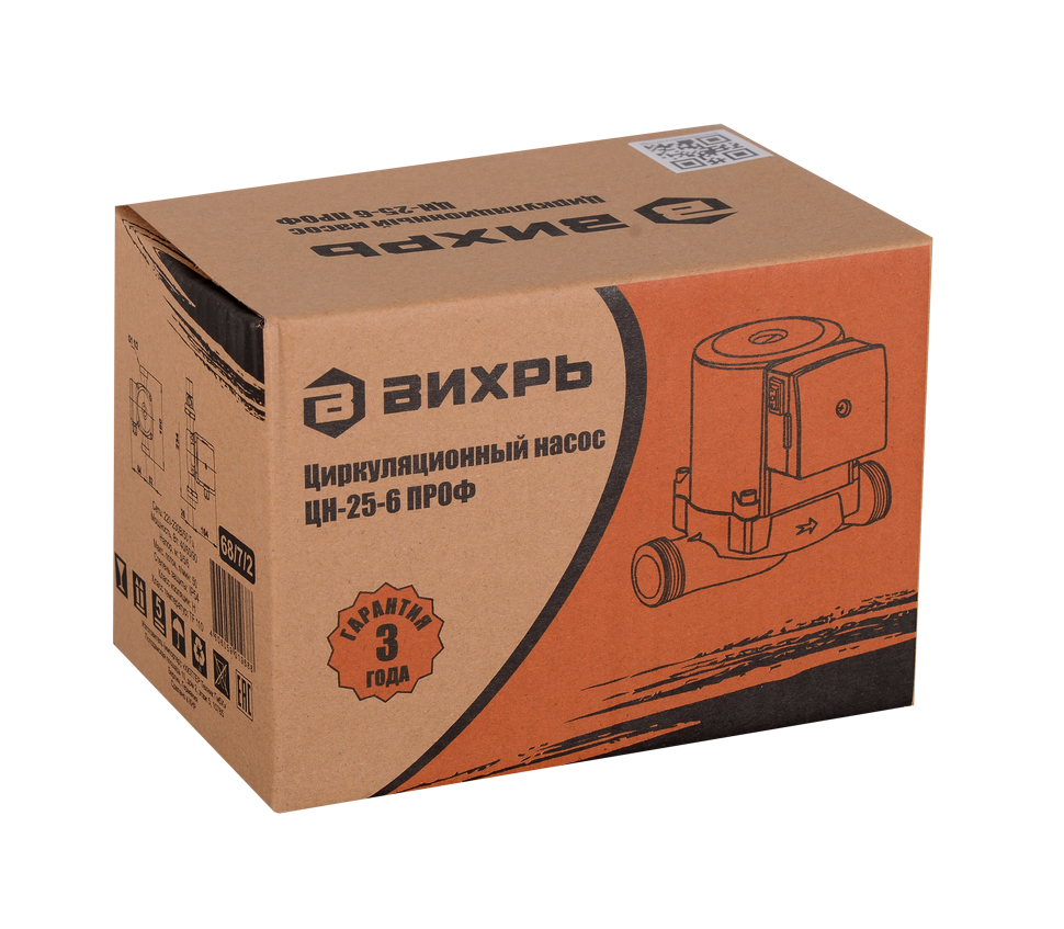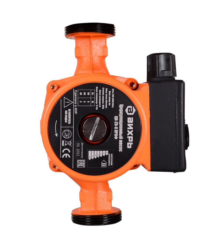 Модель Вихрь ЦН-25-6 ПРОФ имеет повышенную защиту за счёт прочного корпуса из алюминиевого сплава и корпуса двигателя из чугуна. Насос также хорошо защищён от влаги и брызг. Степень защиты – IP54. Класс изоляции – Н. В комплект этого циркуляционного насоса входят зажимные клеммы в клеммной коробке, что делает его подключение к электросети простым. Параметры сети питания – 220 В, 50 Гц. Вес агрегата – 2.8 кг.