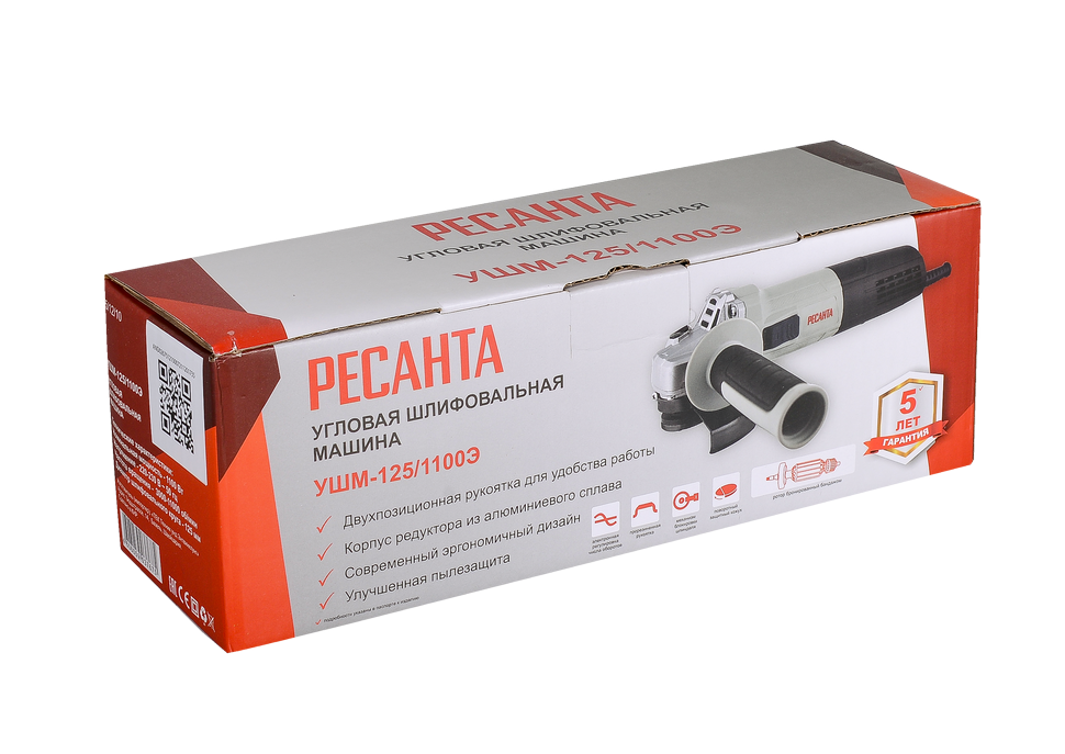Особое внимание производитель этой модели УШМ уделил удобству и безопасности пользования. Шлифмашина имеет удобную компактную рукоятку, выключатель с защитой от несанкционированного включения и блокировку шпинделя, которая позволяет быстро и просто заменять оснастку. Защитный кожух шлифовальной машины можно зафиксировать в нескольких положения, поэтому безопасность оператора будет обеспечена при работе под разными углами. Длина кабеля питания Ресанта УШМ-125/1100Э составляет 2 м., чего в большинстве случаев хватает для проведения работ без использования удлинителя. Параметры электросети – 220 В, 50 Гц. В. Вес угловой шлифовальной машины – 2.2 кг.