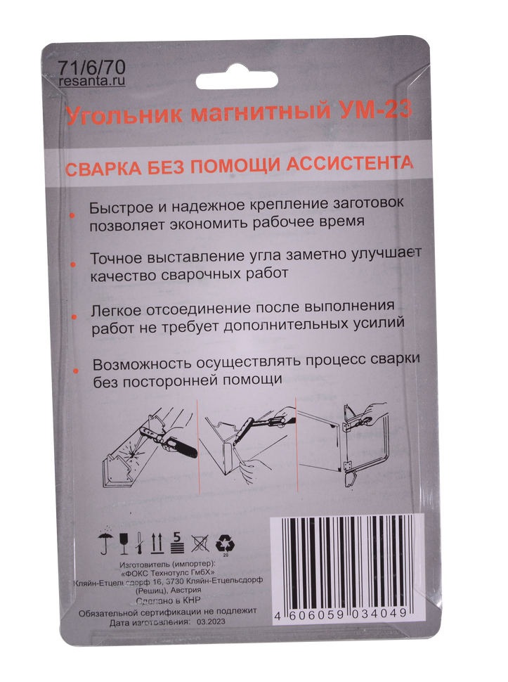 Магнитный угольник Ресанта УМ-23 фиксирует металлические детали в необходимом положении.