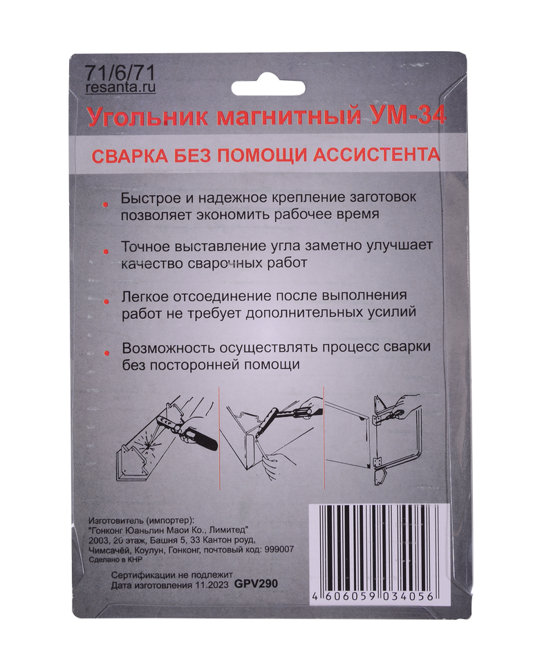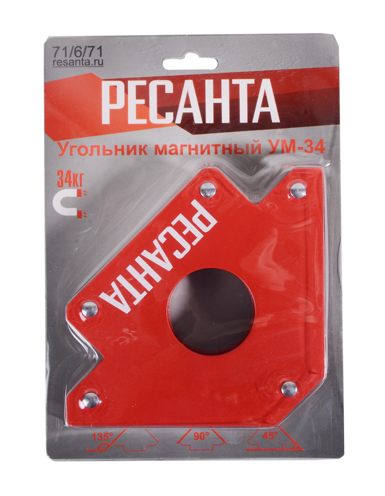Магнитный угольник Ресанта УМ-34 фиксирует металлические детали в необходимом положении.
