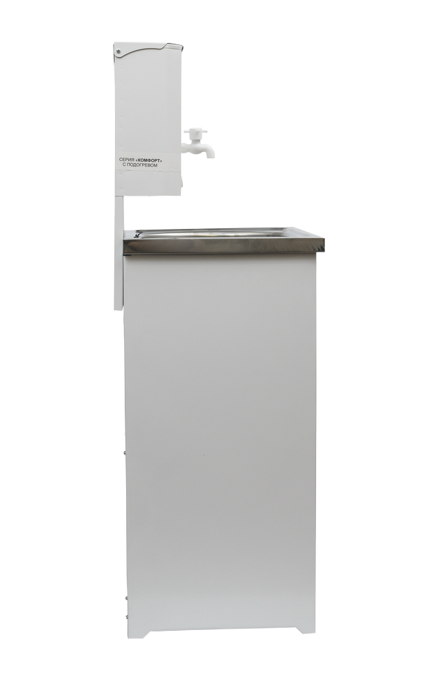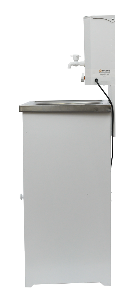 Умывальник дачный «Комфорт» ВИХРЬ с подогревом обеспечивает комфортные бытовые условия при отсутствии водопровода. Вес конструкции 12 кг позволяет самостоятельно транспортировать умывальник. Сварные швы дополнительно обработаны герметиком, что исключает протекание бака с водой. Поперечные планки на задней поверхности тумбы обеспечивают дополнительную устойчивость. Магниты на дверце предотвращают случайное открывание.