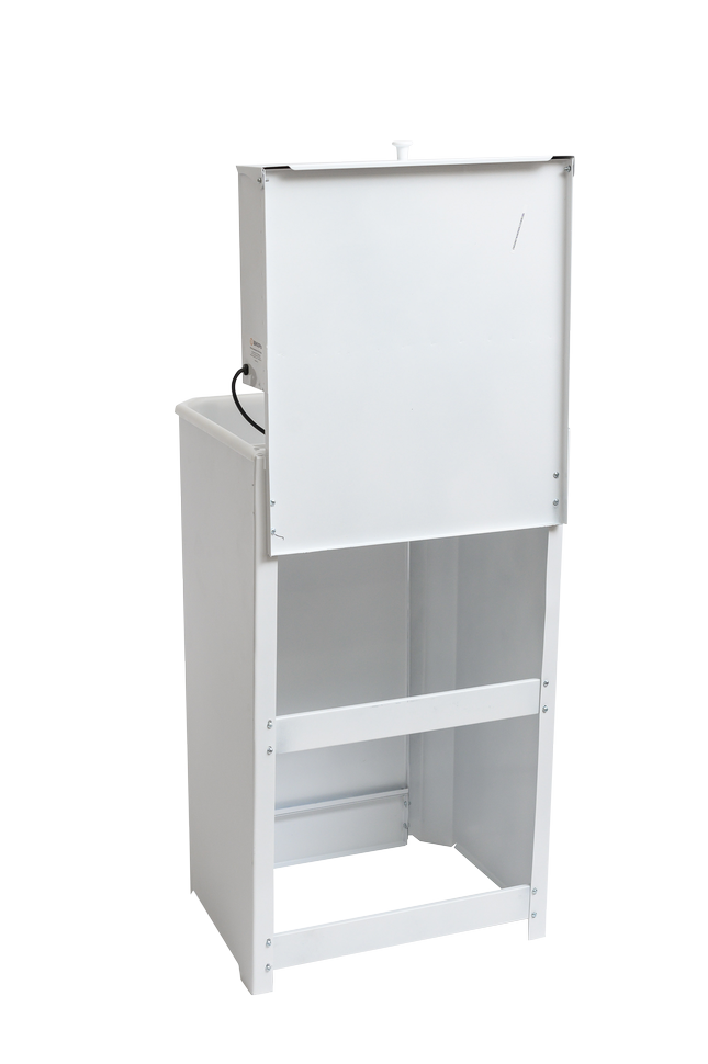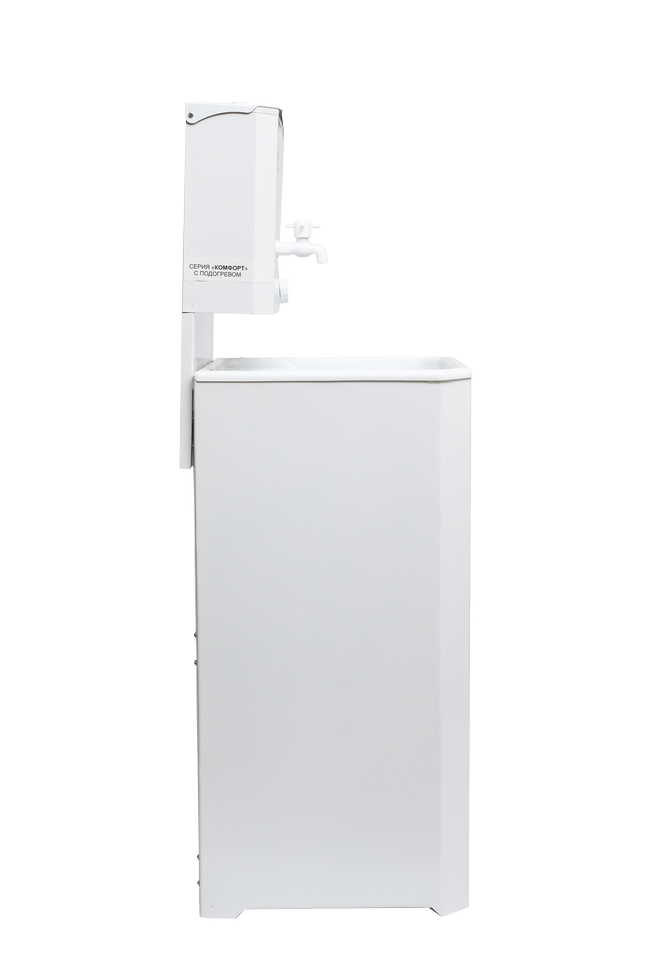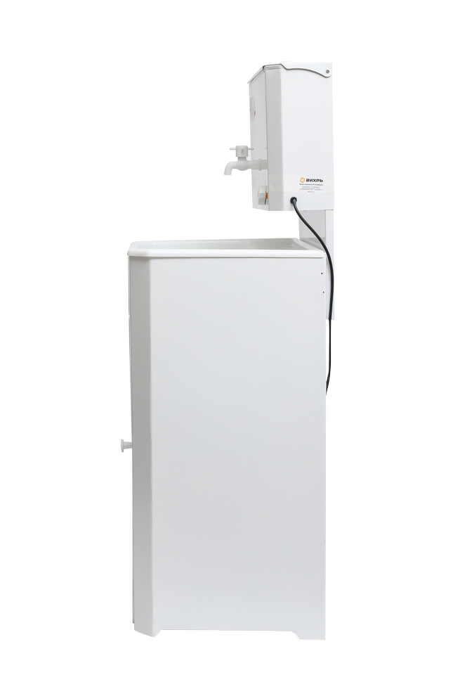 Умывальник дачный «Комфорт» ВИХРЬ с подогревом комплектуется белой мойкой из пластика, баком вместимостью 14 л с врезанным пластиковым краном и разборной тумбой. Каркас для мойки и бак выполнены из стали толщиной металла 0,7 мм. Для коррозийной стойкости она окрашена порошковой краской. Небольшие ножки позволяют воздуху внутри тумбы циркулировать, снижая влажность и предотвращая появление ржавчины.