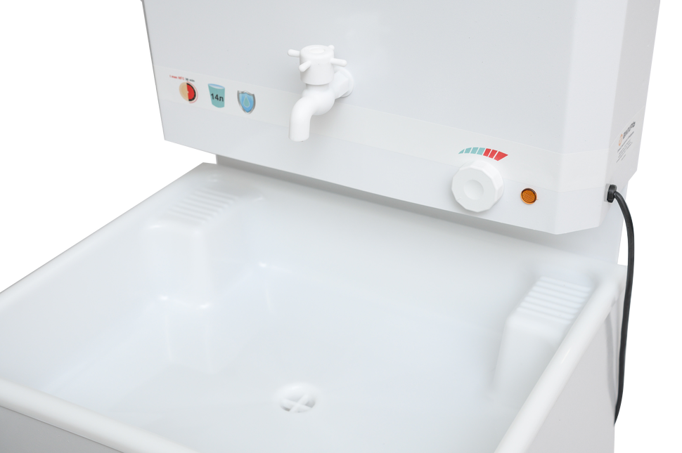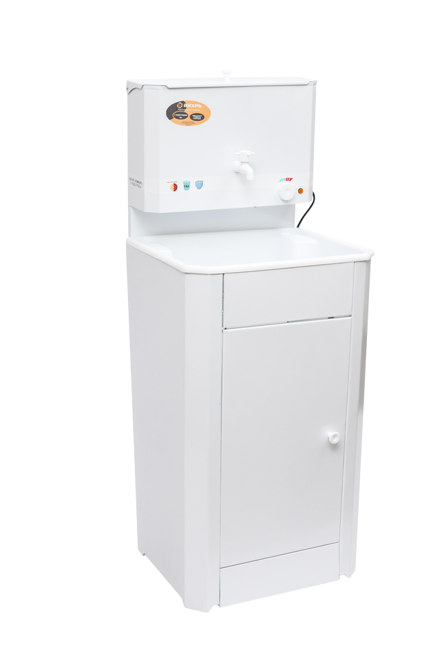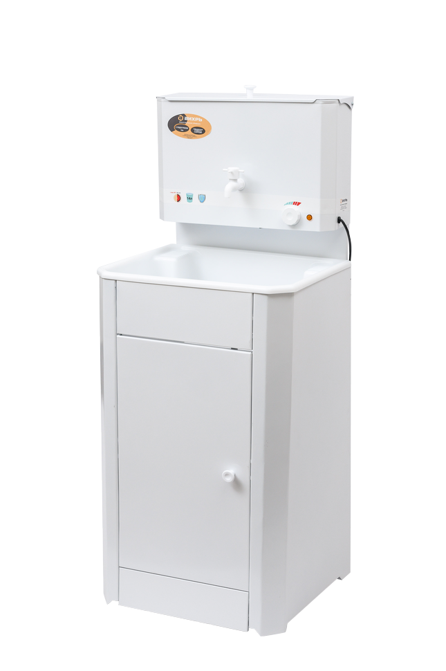 В умывальник дачный «Комфорт» ВИХРЬ с подогревом устанавливается ТЭН мощностью 1300 Вт. Он запитывается от бытовой электросети с номинальным напряжением 220 В. На передней панели бака расположены индикатор включения нагрева и ручка регулировки температуры воды. Терморегулятор автоматически поддерживает заданное значение.