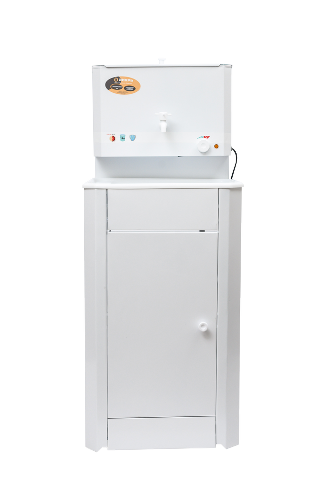 Для удобства транспортировки умывальник дачный «Комфорт» ВИХРЬ с подогревом разбирается. Общий вес конструкции — 12 кг. Умывальник можно перевезти и установить в любом месте без центрального водоснабжения и канализации. Для слива под раковину устанавливается ведро. Чтобы его было удобнее опустошать, дверца тумбы увеличена в размерах.