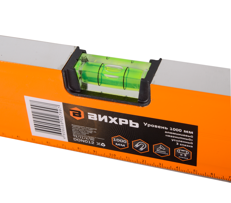Уровень алюминиевый «Магнитный» 1000 мм 3 глазка фрезерованный Вихрь - это профессиональный инструмент, предназначенный для точного измерения уровня и наклона поверхностей.