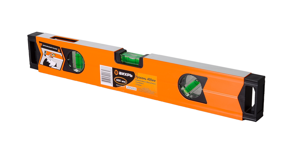 Уровень алюминиевый «Магнитный» 400 мм 3 глазка фрезерованный Вихрь - это профессиональный инструмент, предназначенный для точного измерения уровня и наклона поверхностей.