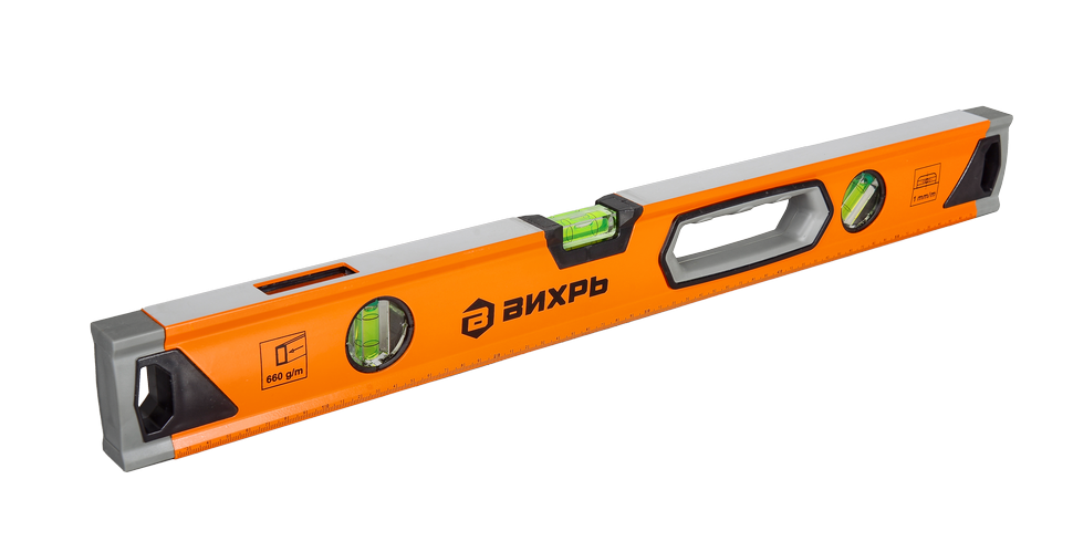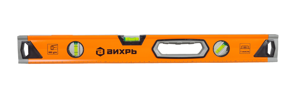 Уровень алюминиевый «Усиленный» 600мм 3 глазка фрезерованный Вихрь - это профессиональный инструмент, предназначенный для точного измерения уровня и наклона поверхностей.