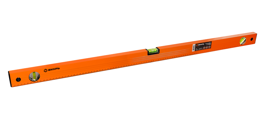 Уровень ВИХРЬ 1000 мм используется для определения горизонтальности и вертикальности поверхностей при выполнении строительных и ремонтных работ. Уровень имеет 3 глазка на металлической планке, которые позволяют быстро и точно определять отклонения по горизонтали, вертикали и под углом 45°. Точность измерений – 1 мм/м (0,057°). Длина уровня составляет 100 см.