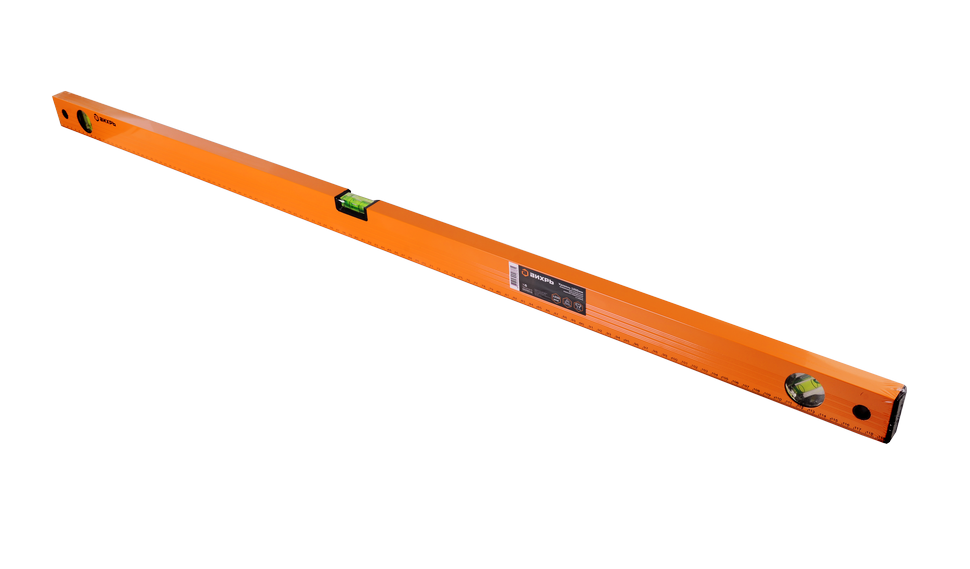Уровень ВИХРЬ 1200 мм используется для определения горизонтальности и вертикальности поверхностей при выполнении строительных и ремонтных работ. Уровень имеет 3 глазка на металлической планке, которые позволяют быстро и точно определять отклонения по горизонтали, вертикали и под углом 45°. Точность измерений – 1 мм/м (0,057°). Длина уровня составляет 120 см.
