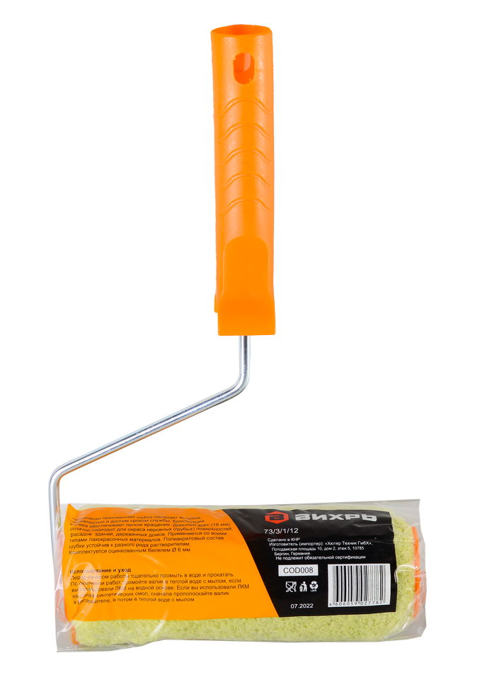 Валики Вихрь могут иметь различную длину ворса и ширину валика, что позволяет выбрать оптимальный вариант для конкретной задачи. Валик Вихрь 180/48/6 фасадный подходит для всех лакокрасочных материалов. Ширина валика составляет 180 мм. Длина ворса 18 мм подходит для обработки неровных поверхностей. Диаметр валика - 48 мм, посадочный диаметр - 6 мм.