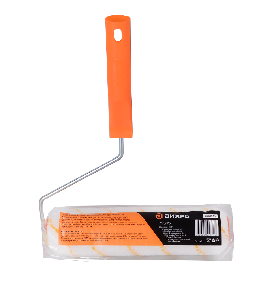 Валики Вихрь могут иметь различную длину ворса и ширину валика, что позволяет выбрать оптимальный вариант для конкретной задачи. Валик Вихрь 250/40/6 универсальный подходит для всех типов работ и лакокрасочных материалов. Ширина валика составляет 250 мм, что позволяет эффективно окрашивать большие площади. Длина ворса 12 мм подходит для работы по большинству поверхностей. Диаметр валика - 40 мм, посадочный диаметр - 6 мм.